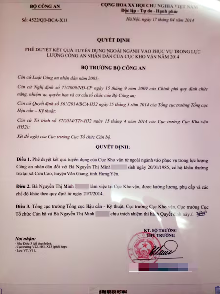 Quyết định tuyển dụng giả mang tên chị Nguyễn Thị Minh N.