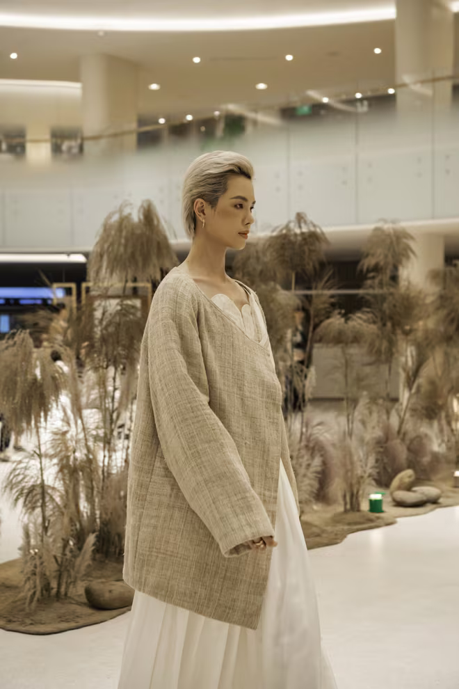 Lấy cảm hứng từ những thửa ruộng bậc thang kỳ vĩ, “Terrace Collection” gồm 30 thiết kế được tạo nên từ vải gai dầu dệt tay của đồng bào H’Mông, kết hợp cùng lụa Mã Châu cổ truyền, thể hiện sự giao thoa tinh tế giữa thủ công bản địa và cảm quan đương đại. Bộ sưu tập do hai nhà thiết kế Phạm Bá Lâm và Trần Phương Thảo (Hemp Oi) thực hiện. Mỗi thiết kế là sự kết nối giữa các thế hệ, gửi gắm thông điệp về lối sống tử tế, gìn giữ bản sắc và kiến tạo tương lai hài hòa với thiên nhiên.
