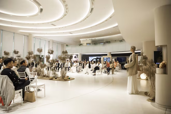 Tại sự kiện trình diễn các thiết kế trong bộ sưu tập, Á hậu 1 cuộc thi "Hoa hậu Việt Nam 2024" Trần Ngọc Châu Anh mở màn trong tiếng đệm đàn piano, góp phần lan tỏa thông điệp về vẻ đẹp gắn liền với văn hóa, trách nhiệm cộng đồng và phát triển xã hội.