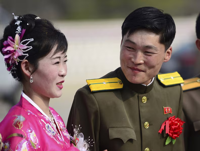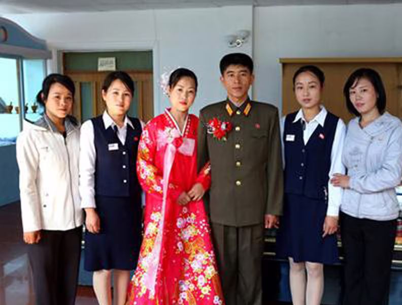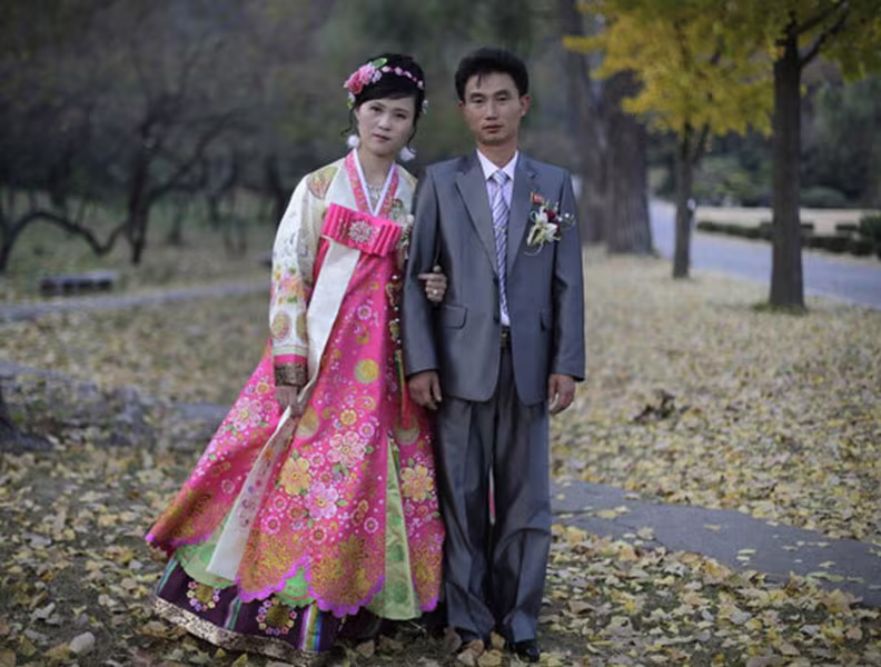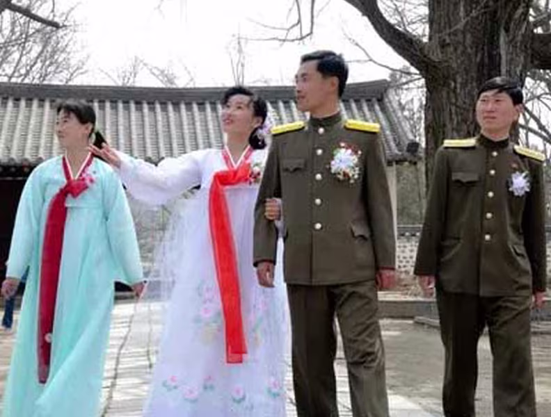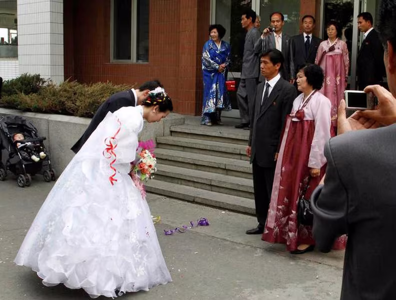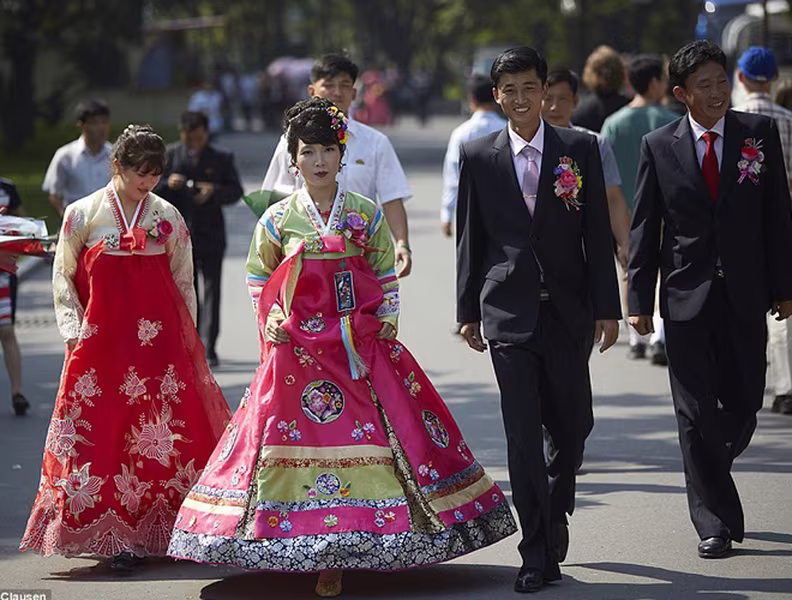 ANTD.VN - Chụp ảnh và dâng hoa cưới tại tượng đài Kim Nhật Thành, không có màn tung hoa, chú rể thường mặc quân phục, ngày cưới không được tổ chức trùng với ngày sinh của cố lãnh đạo là những điều đặc biệt tại đất nước Triều Tiên.