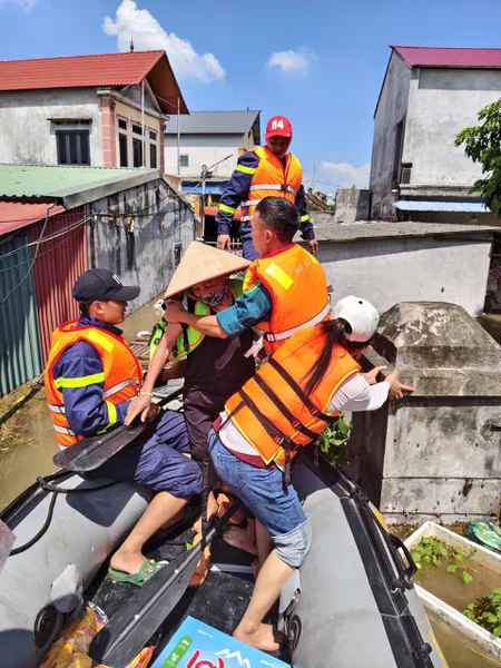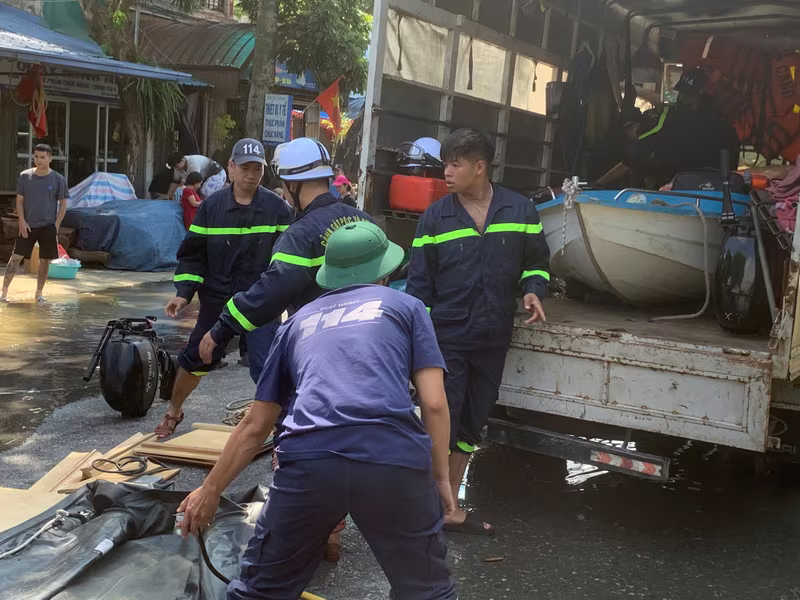 Công an Hà Nội huy động lực lượng hỗ trợ, giúp dân vùng ngập sâu tại các xã Nội Bài, Trung Giã, Đa Phúc, Sóc Sơn