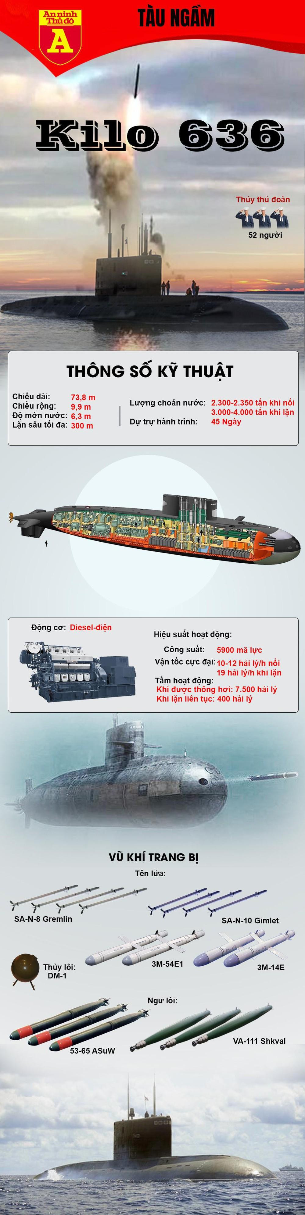 Kilo 636 thuộc lớp tàu ngầm tấn công chạy bằng động cơ diesel – điện, có nhiệm vụ tác chiến chống hạm và chống ngầm. Đây là tàu ngầm thuộc hế hệ thứ ba (loại tiên tiến nhất thế giới).