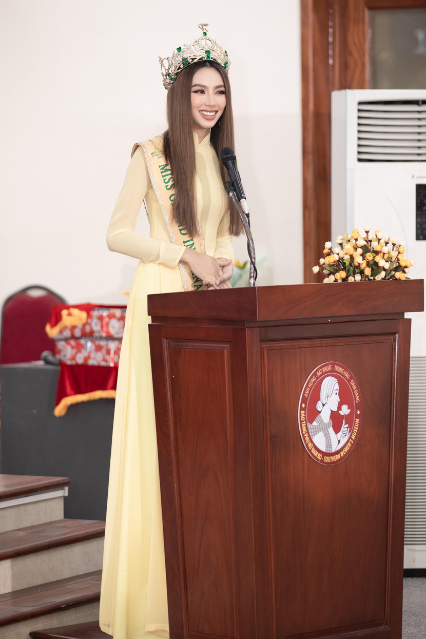 Nhân dịp trở về nước sau đăng quang, Hoa hậu Thùy Tiên đã quyết định trao tặng lại 4 bộ trang phục đặc biệt đến Bảo tàng Phụ nữ Nam Bộ gồm: "Thiên thần áo xanh" (nhà thiết kế Tín Thái), "Kim cương đỏ" và "Giấc mơ vương miện" (nhà thiết kế Nguyễn Minh Tuấn), "Cánh chim hòa bình" (nhà thiết kế Song Toàn). Buổi lễ được tổ chức nhằm truyền tải những ý nghĩa, giá trị sâu sắc được gửi gắm trong từng bộ trang phục, và từ đó có thể tiếp tục lan tỏa rộng rãi hơn đến mọi người về hành trình của đại diện Việt Nam - Nguyễn Thúc Thùy Tiên.