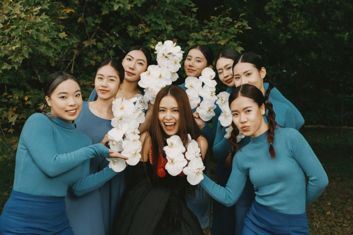 “Miền đất hứa” được đặt trong bối cảnh ở không gian tự nhiên. Một bãi cỏ xanh ngát, như ước vọng về một miền đất thênh thang, trù phú. Màu trắng của lan hồ điệp đại diện cho sự tinh khiết, một cảm giác của tĩnh tại.
