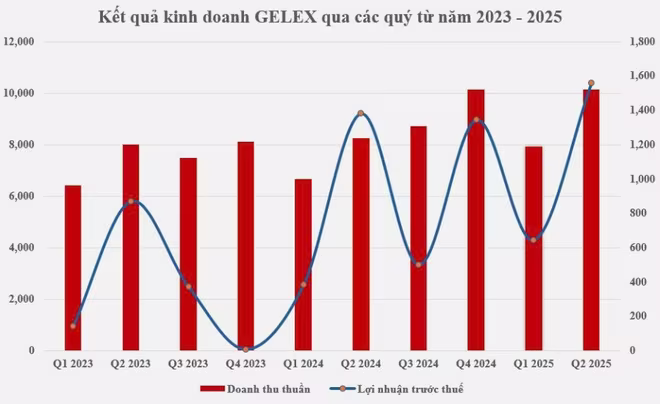 Cụ thể, báo cáo kết quả kinh doanh quý 2/2025, GELEX ghi nhận 10.131 tỷ đồng doanh thu thuần hợp nhất, tăng 22,8% so với cùng kỳ.
