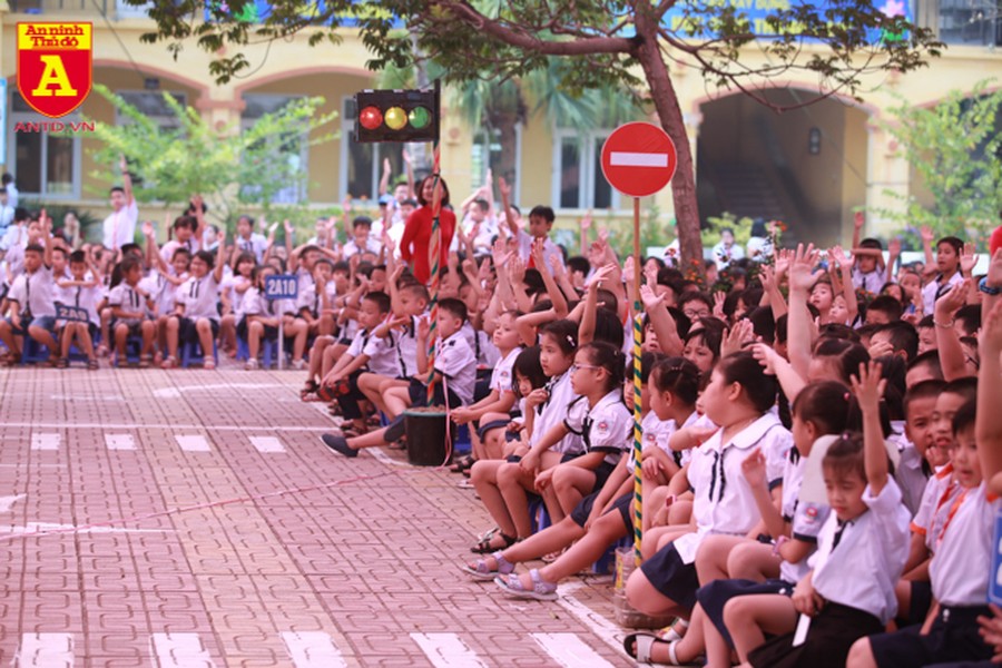 ANTD.VN - Ngày 1-10, trường Tiểu học Cổ Nhuế 2B (quận Bắc Từ Liêm, Hà Nội) phối hợp với khoa Cảnh sát Giao thông đường bộ, đường sắt, Học viện Cảnh sát nhân dân tổ chức chương trình "Tuyên truyền giáo dục pháp luật về trật tự an toàn giao thông năm học 2019-2020" nhằm hưởng ứng tháng cao điểm về an toàn giao thông.