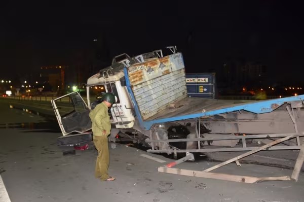 Thông tin ban đầu, khoảng 3h rạng sáng 19/8, xe container chở thùng 40 feet mang BKS: 57H – 8401 do tài xế khoảng 30 tuổi điều khiển chạy trên cầu Sài Gòn hướng từ quận 2 đi quận Bình Thạnh. Khi xe này đang đổ dốc cầu thuộc quận Bình Thạnh, TP.HCM thì bất ngờ mất lái, lao qua trái, húc văng hơn 15m dải phân cách rồi rơi bánh trước ra ngoài mới chịu dừng lại.