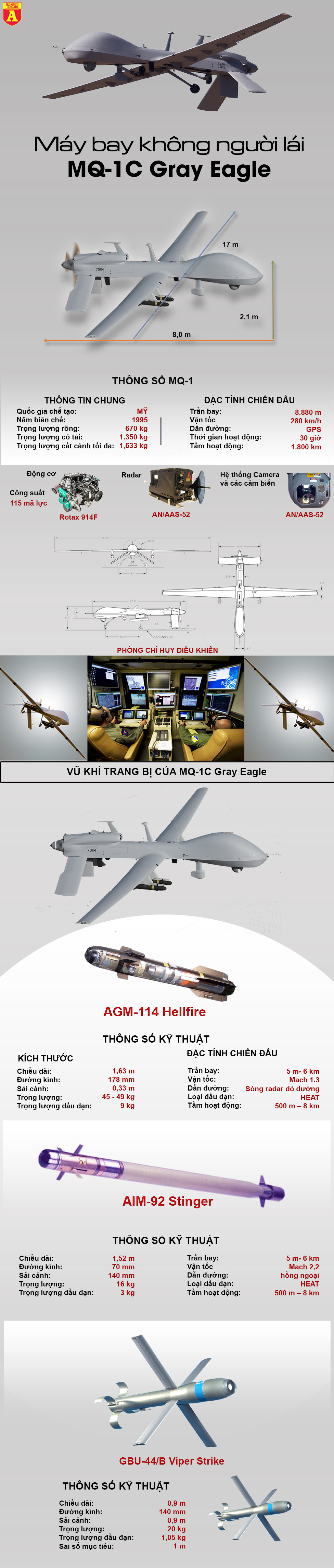 MQ-1C Gray Eagle là một máy bay trinh sát không người lái kiêm tấn công của không quân Mỹ. Với thời gian bay liên tục lên tới 30 giờ cùng khả năng mang theo các tên lửa đối không hoặc đối đất với tổng trọng lượng vũ khí lên tới 553kg, MQ-1C là cơn ác mộng trên không đối với lục quân đối phương.