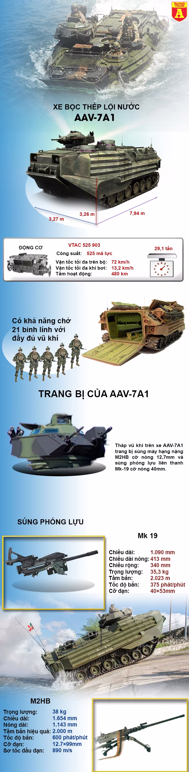 AAV-7A1 là phiên bản hoàn thiện, phổ biến nhất của dòng xe thiết giáp bơi được tập đoàn FMC phát triển và sản xuất cho Thủy quân Lục chiến Mỹ (USMC) và các nước đồng minh. Loại xe thiết giáp này thường được trang bị cho các tiểu đoàn tấn công đổ bộ để đưa binh sĩ tinh nhuệ từ tàu vào bờ biển, sau đó là chi viện hỏa lực cho các đơn vị đánh chiếm bờ biển, đảo.