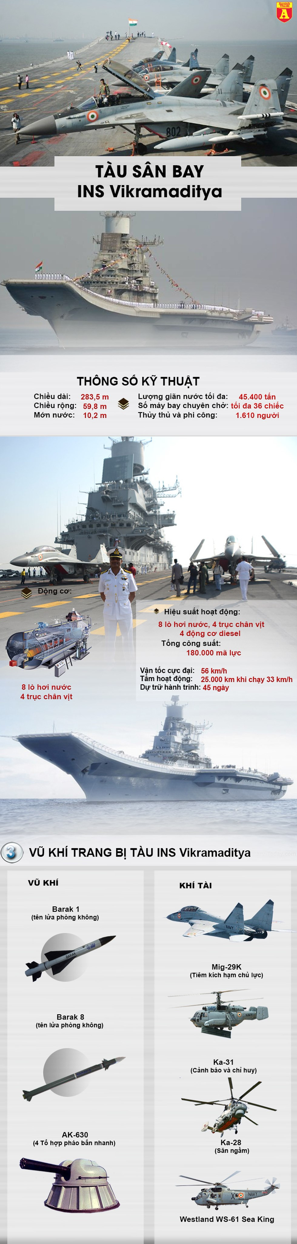 Tàu sân bay INS Vikramaditya chính là biểu tượng sức mạnh của Hải quân Ấn Độ trong những năm đầu thế kỷ 21, cùng với Liêu Ninh (CV-16) đang phục vụ trong biên chế Hải quân Trung Quốc, đây là hai tàu sân bay mạnh nhất Châu Á.