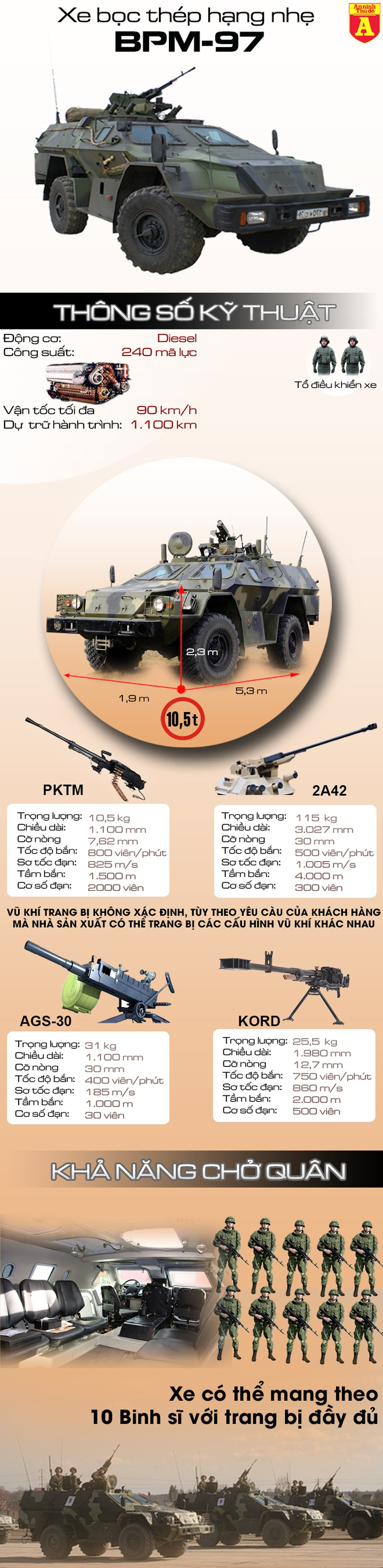Nhà máy KAMAZ tạo ra BPM-97 bằng cách kết hợp khung gầm của xe vận tải đa dụng với phần thân bọc thép, ban đầu KAMAZ-43269 được dự định sẽ thay thế vai trò của xe tải GAZ-66. Đây là một chiếc xe thiết giáp hạng nhẹ có chi phí hợp lý, rất thích hợp cho nhiệm vụ tuần tra hoặc hộ tống. Ngoài nước Nga, BPM-97 còn có trong trang bị của Quân đội Azerbaijan cũng như Kazakhstan.