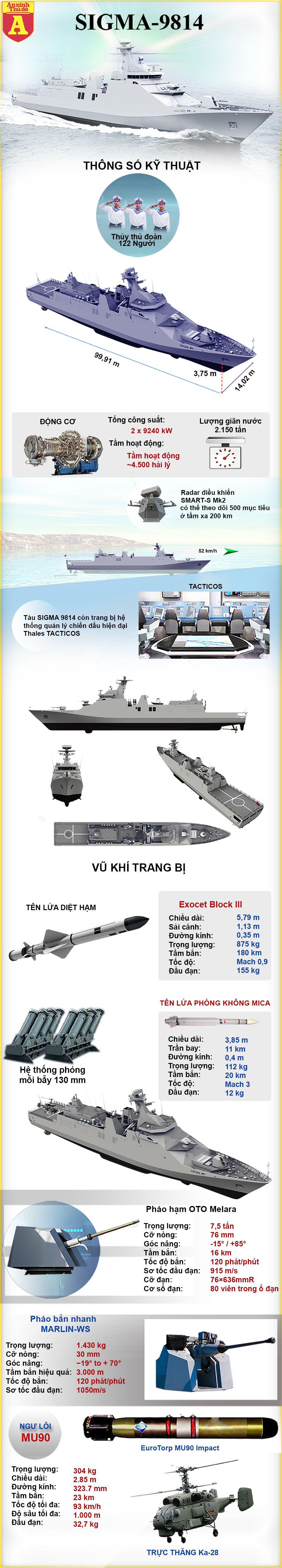 Sau đó tập đoàn đóng tàu Damen (Hà Lan) lại liên tục mời chào chiến hạm Sigma tàng hình với nhiều tính năng độc đáo. Phiên bản được mời chào dành cho Hải quân Việt Nam có tên Sigma 9814.
