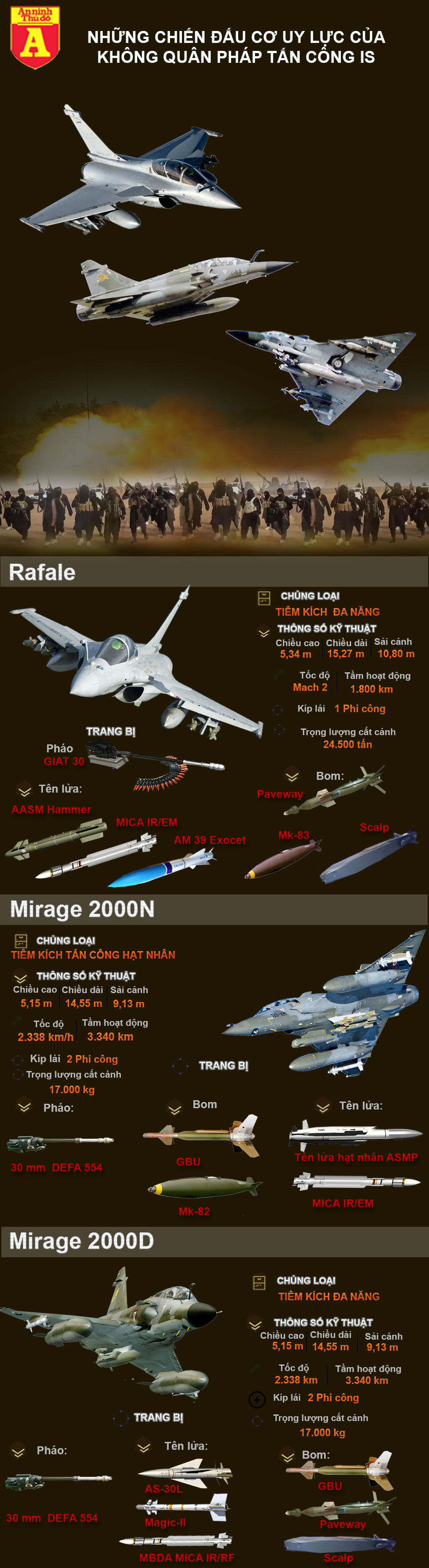 Pháp bắt đầu không kích các mục tiêu của IS vào ngày 21-8-2016 với tư cách là thành viên của liên minh quốc tế do Mỹ dẫn đầu. Mục tiêu đầu tiên của Pháp là trung tâm khủng bố IS nằm tại thành phố Raqqa, Syria. Từ đó cho tới nay, Pháp vẫn thực hiện đều đặn các cuộc không kích vào nhóm khủng bố khét tiếng này, góp phần dẫn tới sự sụp đổ của chúng tại thành trì Raqqa, Syria và Mosul tại Iraq.