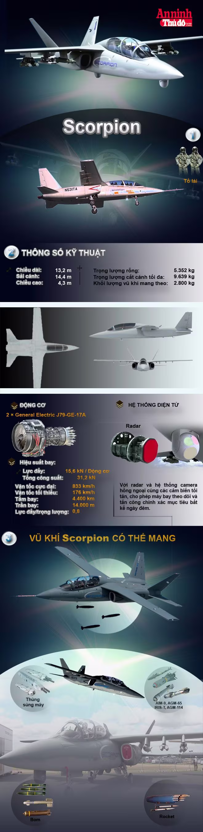 Máy bay cường kích hạng nhẹ Scorpion do công ty Textron AirLand chế tạo đã đáp ứng được yêu cầu của quân đội Mỹ về dòng máy bay hạng nhẹ, chi phí sử dụng rẻ và mang được các vũ khí tấn công dẫn đường chính xác. Điểm mạnh của máy bay Scorpion là sự đơn giản hóa. Toàn bộ trang bị quan trọng của máy bay như kết cấu khung thân, động cơ đều là các sản phẩm đang được sử dụng trên các dòng máy bay thương mại.