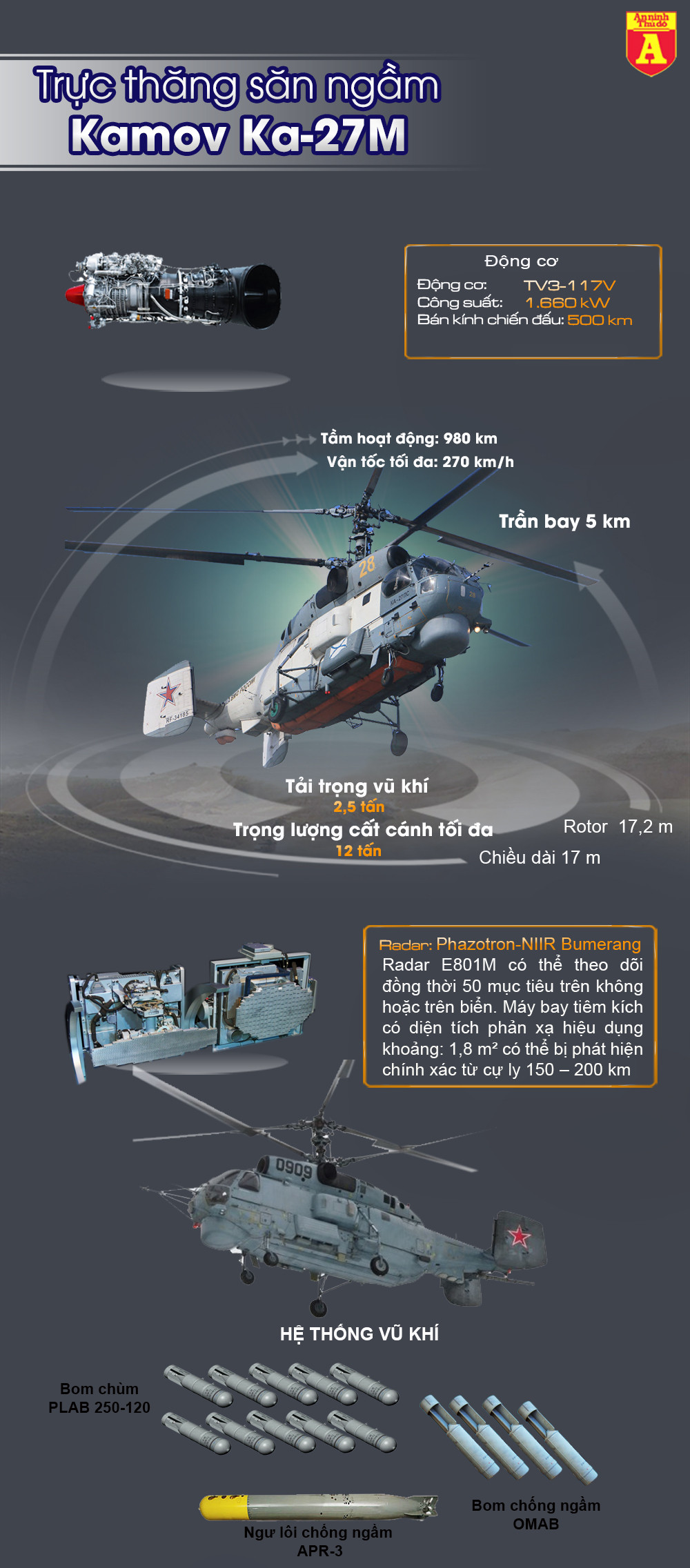 Trực thăng Ka-27M sẽ tăng cường các hoạt động trinh sát trên không trên biển, bảo vệ chống ngầm cho các tàu mặt nước, tìm kiếm, phát hiện, theo dõi và tiêu diệt tàu ngầm và tàu mặt nước, tiến hành tìm kiếm cứu nạn đối với phi hành đoàn gặp nạn trên biển.