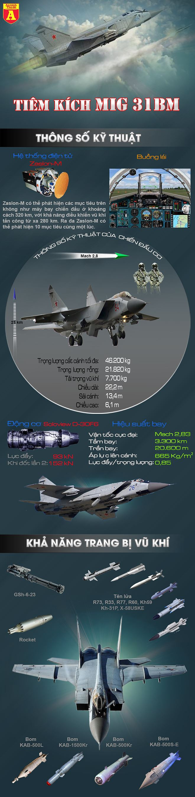 Tiêm kích MiG-31, có tên định danh của NATO là Foxhound, có chuyến bay thử đầu tiên vào năm 1975. Nó được tạo ra nhằm thay thế cho MiG-25. Có thể nói, bầu trời nước Nga đang được bảo vệ bởi loại máy bay "độc nhất", có thể đánh chặn bất kỳ mục tiêu nào, từ các tên lửa hành trình cho đến cả vệ tinh, trong mọi điều kiện thời tiết, cả ngày lẫn đêm và ở bất kỳ tốc độ nào.