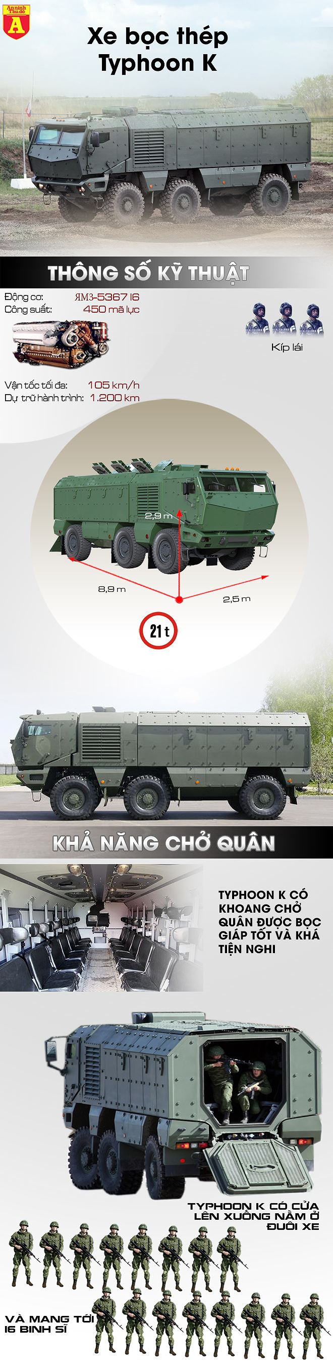 Typhoon K là phiên bản mới nhất trong gia đình xe bọc thép Typhoon của Nga. Xe có thiết kế khí động học khá độc đáo với khung gầm hình chữ V để phân tán lực nổ, các mặt cắt phía trước giúp xe có khả năng làm chệch hướng của các loại đạn bộ binh bắn thẳng.