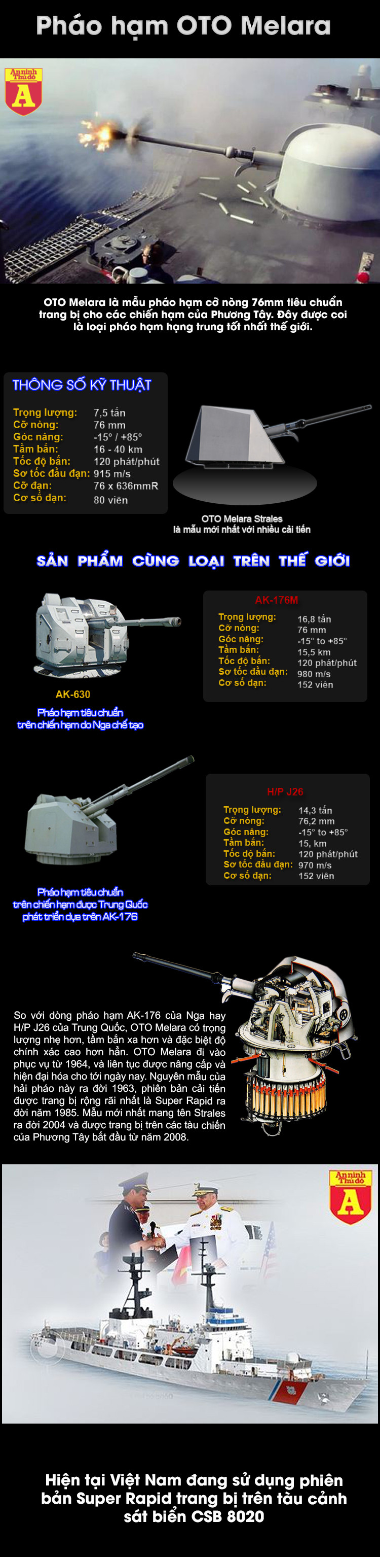 OTO Melara do Ý sản xuất được coi là pháo hạm tầm trung tốt nhất thế giới. Mỹ đã mua thiết kế và sản xuất loại pháo này trang bị cho tàu chiến của mình. So với các sản phẩm cùng loại vốn chỉ có tầm bắn khoảng 15km, thì pháo hạm OTO Melara với đạn thông minh có thể bắn tới 40km, xa gấp hơn hai lần đối thủ, và độ chính xác cũng cao hơn hẳn đối thủ.