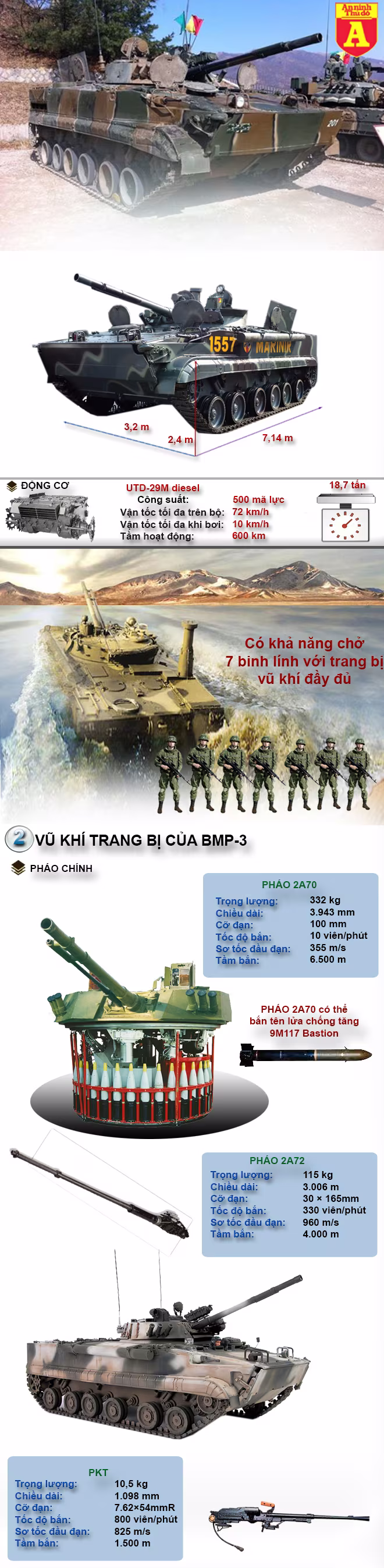 Cùng xem thông số chi tiết của BMP-3 qua infographic dưới đây.