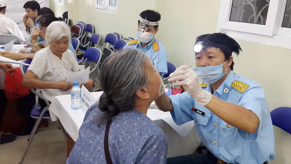 Các bác sĩ Viện Y học Phòng không – Không quân đang khám bệnh cho người dân.