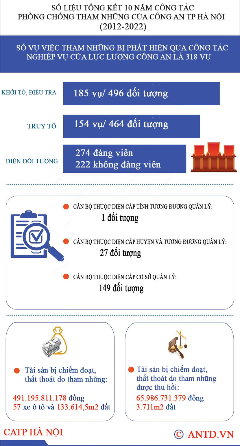 - Nhìn lại chặng đường 10 năm thực hiện Kết luận Hội nghị Trung ương 5 khóa XI, công tác phòng, chống tham nhũng, tiêu cực được Đảng ủy, Ban Giám đốc CATP Hà Nội lãnh đạo, chỉ đạo quyết liệt, đồng bộ, toàn diện, bài bản, đi vào chiều sâu, với quyết tâm chính trị rất cao, đạt nhiều kết quả rõ rệt, được nhân dân đồng tình, ủng hộ, đánh giá cao. Kết quả công tác phòng, chống tham nhũng, tiêu cực trong CATP đã chuyển biến tích cực, khẳng định những mục tiêu, quan điểm, chủ trương, giải pháp đúng đắn của Đảng và Nhà nước về phòng, chống tham nhũng, tiêu cực. Việc nêu gương được tiến hành thường xuyên, liên tục, thực chất, không hình thức, đổi mới về phương pháp lãnh đạo, chỉ đạo, nêu cao tính chủ động, phòng ngừa, phát hiện, xử lý các vụ việc có dấu hiệu tham nhũng và các hành vi bao che, dung túng, cản trở việc chống tham nhũng.