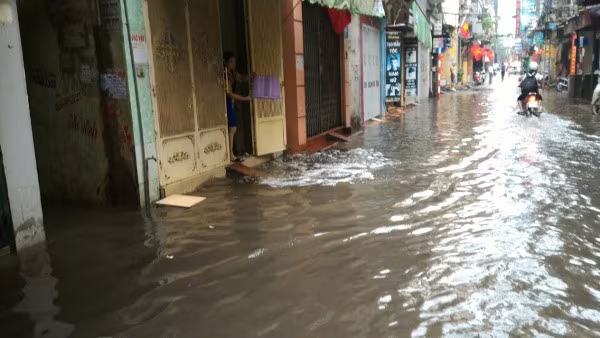 Nước bẩn và rác thải sau cơn mưa dai dẳng