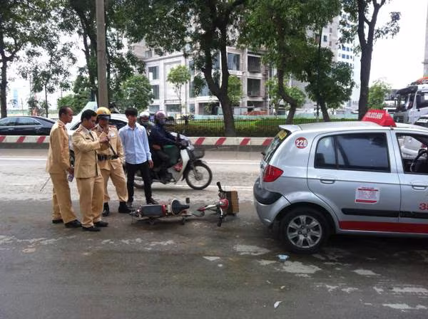 Theo thông tin ban đầu, nguyên nhân tai nạn do tài xế taxi phanh gấp khiến chiếc xe đạp điện đang di chuyển cùng chiều không dừng tránh, đâm vào đuôi xe.