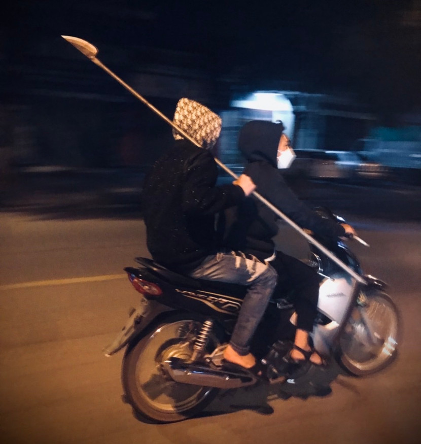 | Nhóm thanh thiếu niên này rủ nhau tụ tập, mang theo hung khí đi hỗn chiến |
