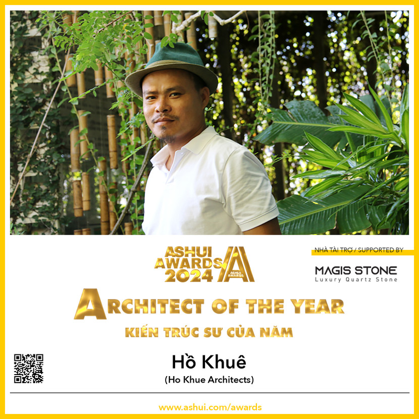Theo đó, danh hiệu Kiến trúc sư của năm thuộc về KTS Hồ Khuê (Đà Nẵng), người theo đuổi kiến trúc bền vững và đột phá sáng tạo. Với quan niệm một công trình có thể sẽ trở thành một di sản kiến trúc trong tương lai và tự bản thân nó phải biết kể chuyện, đã thúc đẩy KTS Hồ Khuê và các cộng sự luôn suy nghĩ và hành động một cách nghiêm túc. Các công trình tiêu biểu anh đã chủ trì thiết kế: AEC 4B Tower, Khu đô thị Ecopark Sông Lam, Văn phòng Xưởng dệt may Quảng Nam, Nhà An Nhiên, Nhà Lồng Đèn, Green Peace Village,… và đặc biệt là dự án Nhà Trưng bày Nghệ thuật quận Sơn Trà giành danh hiệu “Công trình của Năm 2024”.