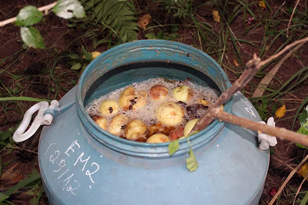 Ổi hỏng trong vườn cũng được thu hoạch để lên men vi sinh, làm phân bón hữu cơ cho cây