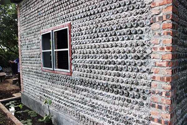 Ngôi nhà được xây từ rất nhiều vỏ chai nước khoáng đã qua sử dụng ở nhiều công ty, xí nghiệp trên địa bàn Hà Nội