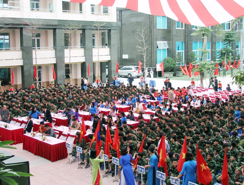 ANTD.VN - Bên cạnh không khí trang nghiêm là các tiết mục biểu diễn đầy tính nghệ thuật do chính học sinh trường THPT Trần Quốc Tuấn biểu diễn, tạo nên buổi lễ xuất quân đầy màu sắc.
