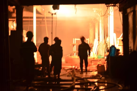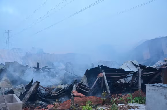 Đến 9h sáng 18/8, cơ quan chức năng cùng lực lượng Cảnh sát PCCC huyện Bình Chánh mới dập tắt đám cháy xảy ra tại Công ty trách nhiệm hữu hạn xuất nhập khẩu Thái Thành Nhân, địa chỉ E7/211A, Ấp 5, xã Phong Phú, huyện Bình Chánh, TP.HCM.