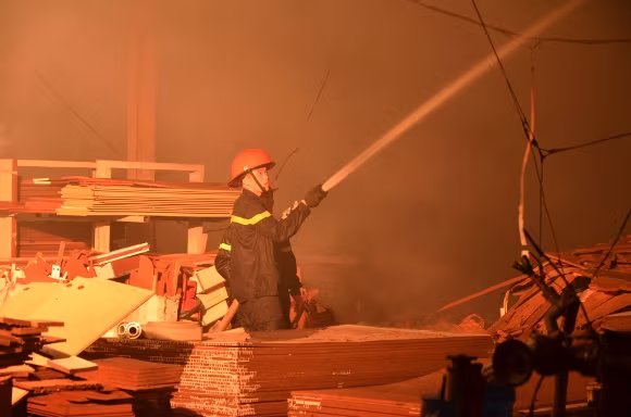 Do diện tích đám cháy lên đến hơn 1.000 m2, nguyên liệu là gỗ và hóa chất cháy dữ dội nên việc tiếp cận, dập tắt đám cháy gặp nhiều khó khăn. Phải đến 8h sáng, đám cháy cơ bản được khống chế, nhưng nhiều khu vực vẫn còn cháy âm ỉ.