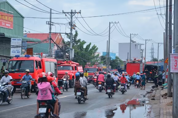 Công nhân tháo chạy tán loạn, nhiều người thoát được ra ngoài đã dùng bình cữa cháy tạo chỗ, nước tham gia dập lửa. Tuy nhiên, khu vực nhà xưởng có nhiều nguyên liệu, hóa chất dễ bốc cháy nên ngọn lửa nhanh chóng bùng phát, lan ra phạm vi rộng.