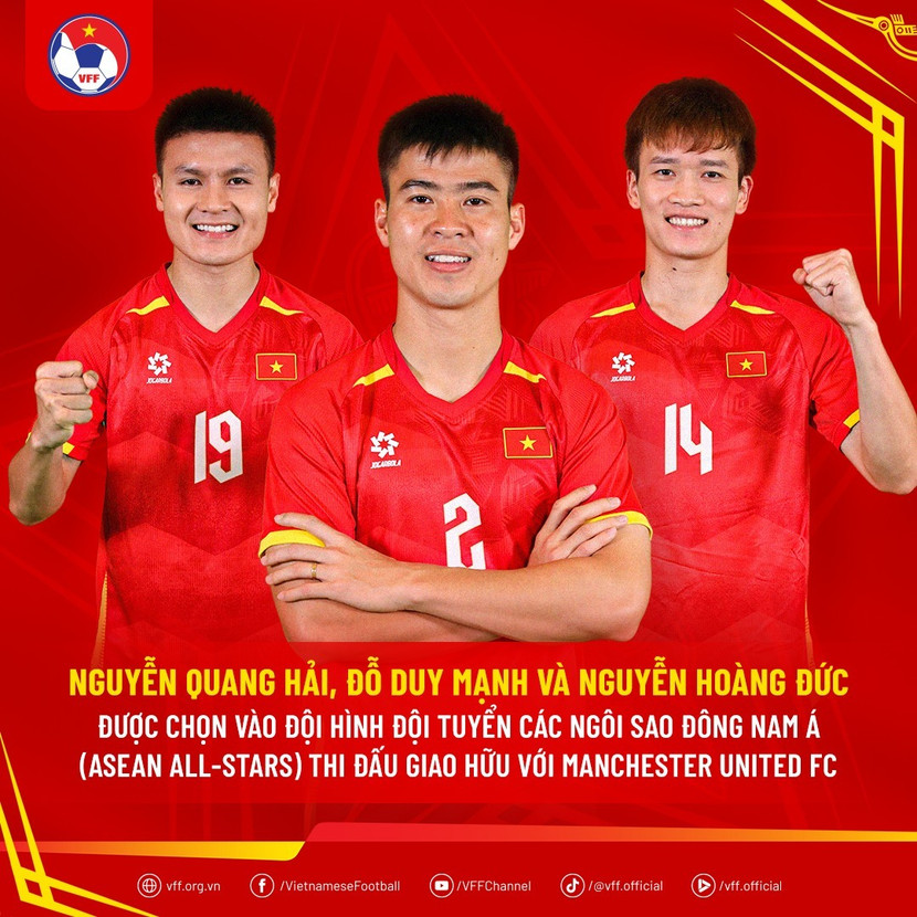 Trước đó, AFF đã chính thức công bố lựa chọn ông Kim Sang-sik – HLV trưởng đội tuyển Việt Nam – là người dẫn dắt ASEAN All-Stars thi đấu với Manchester United. Như vậy, ĐT Việt Nam đóng góp 4 thành viên cho đội Các ngôi sao Đông Nam Á khi chạm trán Quỷ đỏ.