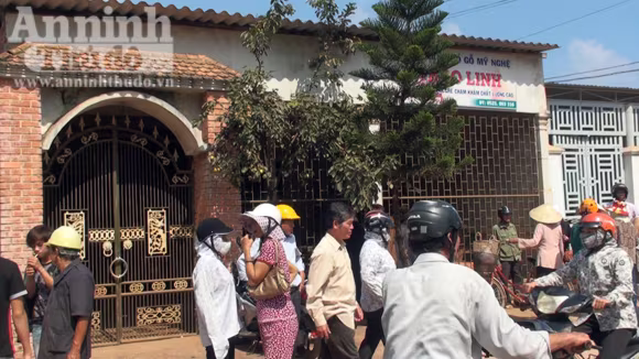 Nhà của Linh khi cơ quan điều tra khám xét đã có hàng trăm người đến tò mò theo dõi