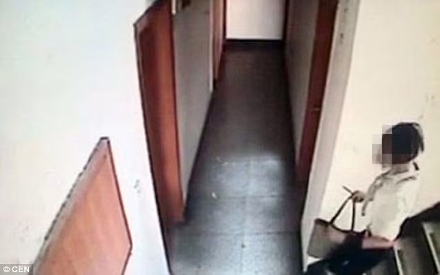 Camera giám sát quay được hình ảnh bà Zhang vội vã chạy xuống cầu thang
