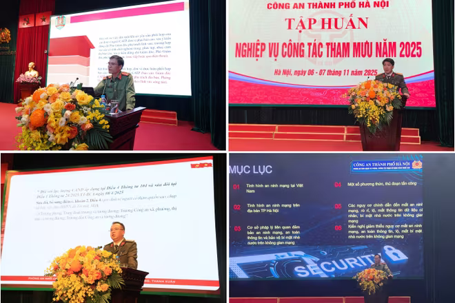 Trong thời gian 1,5 ngày tổ chức lớp tập huấn, các báo cáo viên đến từ Bộ Công an, Học viện Chính trị CAND và các phòng nghiệp vụ CATP đã truyền đạt nội dung 8 chuyên đề có ý nghĩa thiết thực gắn với thực tiễn công tác, trọng tâm là: Kỹ năng soạn thảo văn bản, biên tập nghị quyết, chỉ thị, báo cáo sơ kết, tổng kết trong Công an nhân dân; công tác tham mưu với cấp ủy, chính quyền địa phương và Công an cấp tỉnh trong công tác bảo đảm an ninh trật tự và xây dựng lực lượng Công an trong sạch, vững mạnh, chính quy, tinh nhuệ, hiện đại; công tác bảo vệ bí mật nhà nước; công tác xây dựng phòng trào toàn dân bảo vệ An ninh Tổ quốc, công tác dân vận và phát huy vai trò lực lượng tham gia bảo vệ an ninh trật tự ở cơ sở; công tác pháp chế, cải cách hành chính, tư pháp; công tác bảo vệ bí mật nhà nước trên không gian mạng, phòng chống tấn công mã độc; công tác xây dựng báo cáo định kỳ, chế độ thông tin báo cáo, chỉ tiêu công tác, quy chế làm việc và chế độ kiểm tra công tác; chấm điểm công tác chuyên môn năm 2025; công tác chuyển đổi số; chế độ trực ban, trực chiến; công tác phát ngôn và cung cấp thông tin của lực lượng Công an nhân dân trên môi trường mạng.