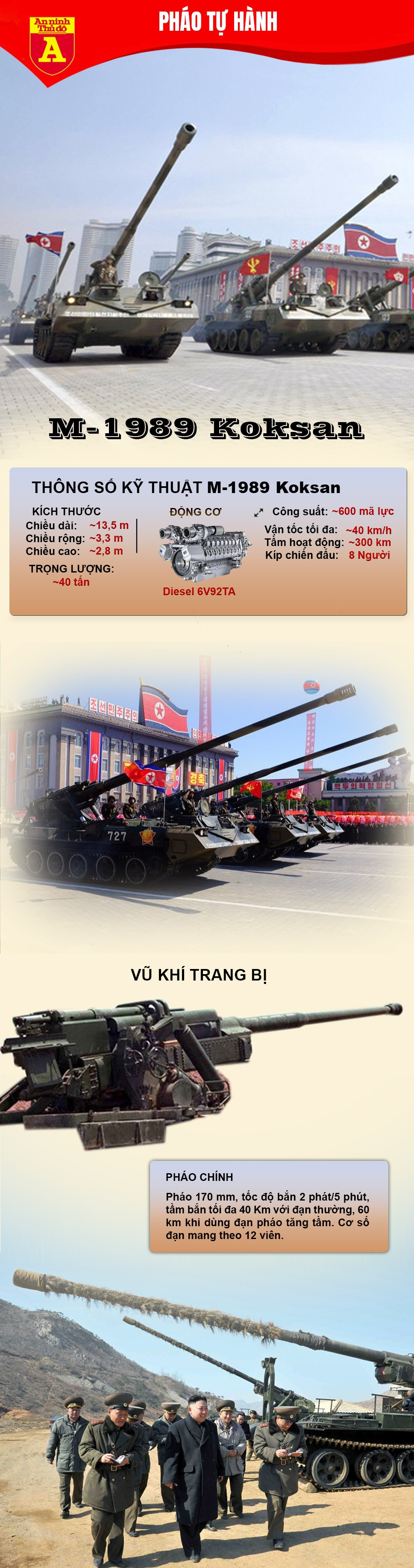 Pháo tự hành M-1989 Koksan cỡ nòng 170mm của Triều Tiên là một trong những loại pháo đáng chú ý nhất trong kho vũ khí quân sự của Bình Nhưỡng.