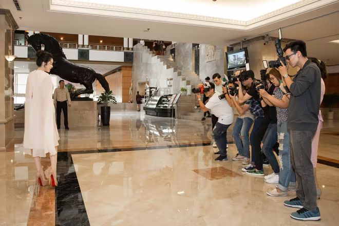 Ngay khi chiếc siêu xe Rolls-Royce phiên bản Ghost ghé sảng khách sạn Lotte Legend Saigon, Công chúa Mindanao Lý Nhã Kỳ đã được các paparazi chăm sóc tận tình từ cửa xe. Nữ doanh nhân, diễn viên xinh đẹp thân thiện chiều lòng các phóng viên khi cô liên tục tạo dáng bên cạnh chiếc siêu xe này cũng như tại sảnh khách sạn để truyền thông có được những tấm hình đẹp nhất.