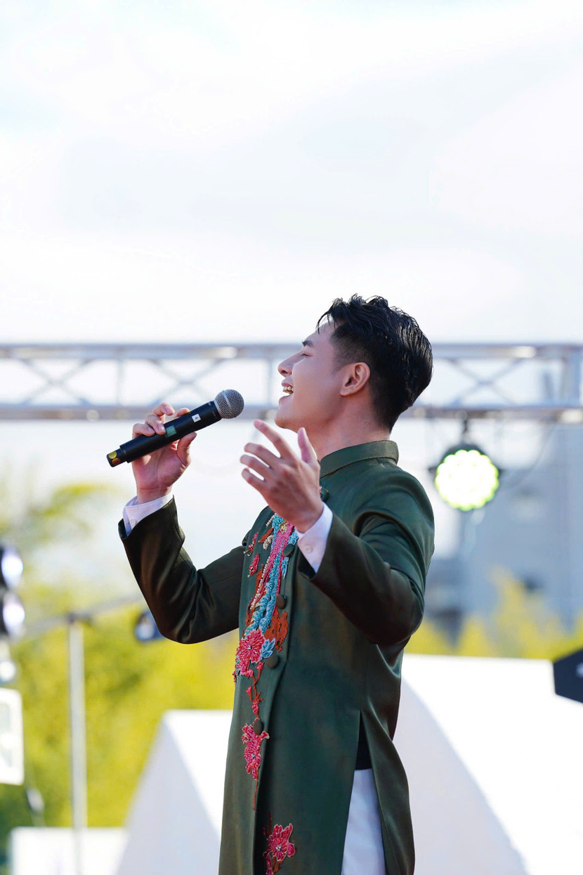 Đặc biệt, không chỉ đảm nhận vai trò dẫn dẫn dắt chương trình, Bùi Phúc Anh còn xuất hiện tại sân khấu "Xuân quê hương 2025 – Trái tim Việt Nam" với vai trò ca sĩ. Tiết mục anh thể hiện là một điểm nhấn của chương trình - ca khúc "Việt Nam trong tôi là" trên nền màn biểu diễn 50 lá cờ Tổ quốc tung bay trong lễ khai mạc.