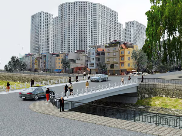 Phối cảnh cầu Quan Nhân nối Đô thị Royal City và Đường Láng sau khi hoàn thành