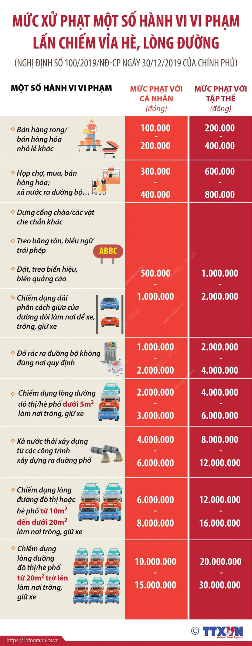 ANTD.VN - Lấn chiếm vỉa hè, lòng đường là hành vi bị pháp luật nghiêm cấm. Nếu vi phạm, cá nhân, tổ chức thực hiện có thể bị xử phạt vi phạm hành chính. Điều 12 Nghị định số 100/2019/NĐ-CP ngày 30-12-2019 của Chính phủ quy định rõ các mức xử phạt hành vi vi phạm quy định về sử dụng, khai thác trong phạm vi đất dành cho đường bộ.