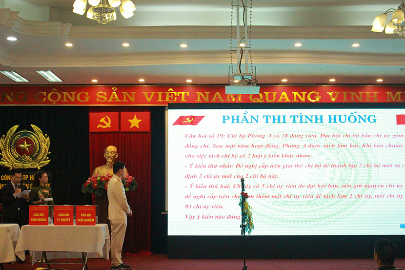 Phát biểu khai mạc Hội thi, Đại tá Thành Kiên Trung - Trưởng Công an quận Cầu Giấy nhấn mạnh: “Đây là lần đầu tiên Hội thi Bí thư Chi bộ giỏi được tổ chức trong Đảng bộ Công an thành phố Hà Nội, với mục đích bồi dưỡng kiến thức, kỹ năng, phương pháp để đội ngũ cấp ủy, bí thư các chi bộ nghiên cứu, học tập, nắm chắc và vận dụng tốt các nguyên tắc, quy định của Đảng, góp phần nâng cao năng lực lãnh đạo, sức chiến đấu của tổ chức Đảng và đội ngũ đảng viên, từ đó thực hiện thắng lợi Nghị quyết Đại hội Đảng các cấp”.