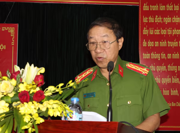 Đại tá Nguyễn Văn Quyền - Trưởng Phòng Kỹ thuật hình sự CATP Hà Nội phát biểu tại lễ bế giảng