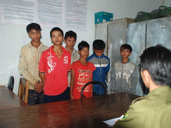 Các thanh thiếu niên bị lực lượng Công an xã lập biên bản xử lý