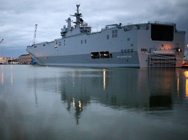 Hợp đồng đóng 2 tàu Mistral trị giá 1,2 tỉ euro đã được kí bởi xưởng đóng tàu DCNS (Pháp) và tập đoàn xuất khẩu quốc phòng Rosoboronexport (Nga) vào năm 2011. Chiếc tàu đầu tiên có kế hoạch bàn giao vào năm 2014 trong khi chiếc thứ 2 vào 2015. Tuy nhiên, Pháp đã phải chịu áp lực từ phía Mỹ và đồng minh châu Âu trong việc giữ nguyên quan điểm cứng rắn với Nga kể từ khi xung đột ở Ukraine nổ ra.