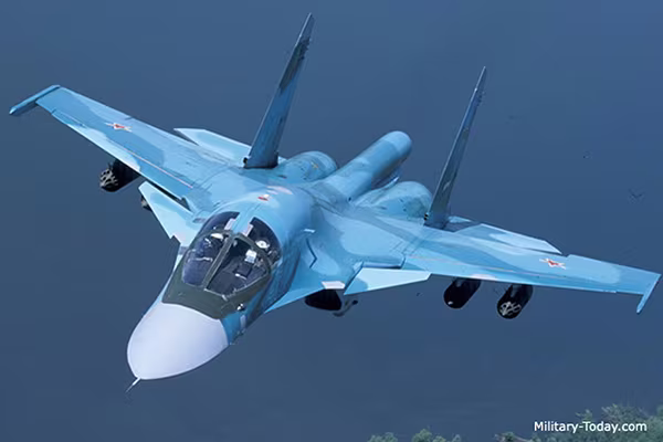 Su-34 là loại máy bay tiêm kích ném bom và tấn công tiên tiến của Nga. Nó có tải trọng vũ khí lớn, buồng lái được bọc giáp vững chắc, có thể tiến hành tiếp dầu trên không và có tầm bay rất xa.