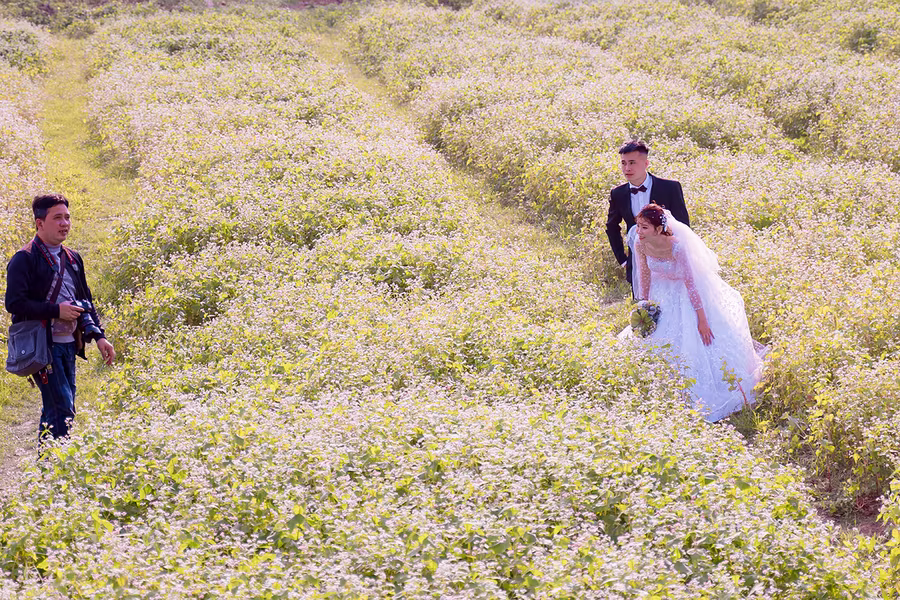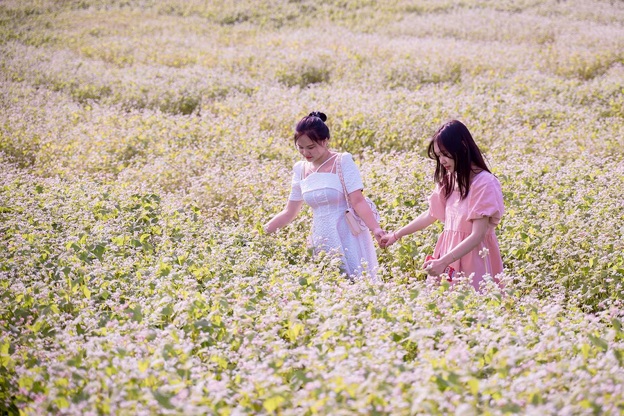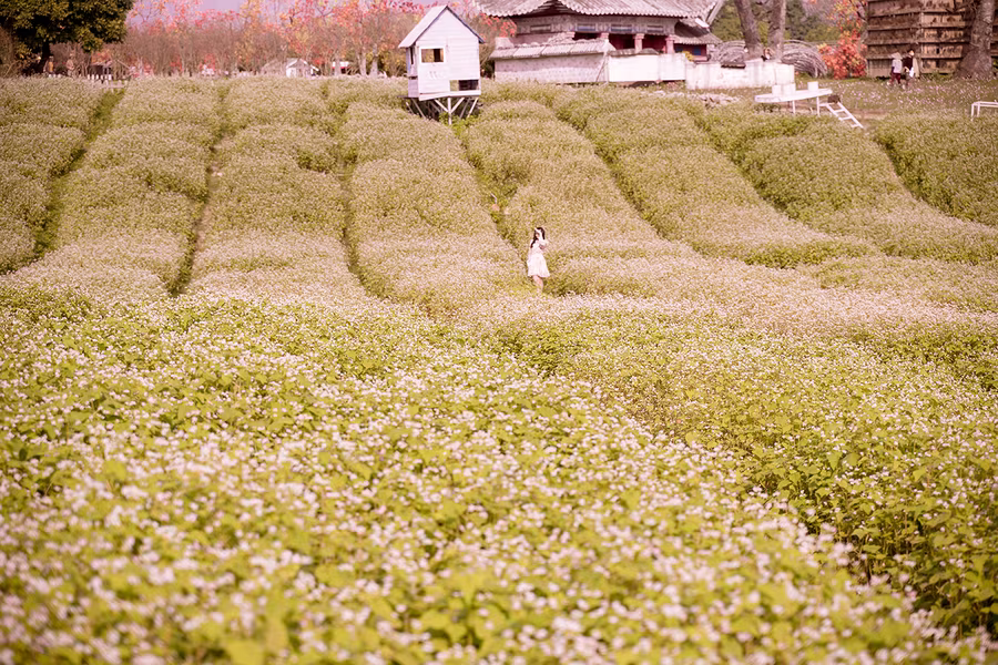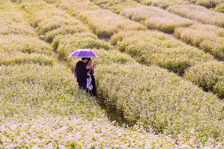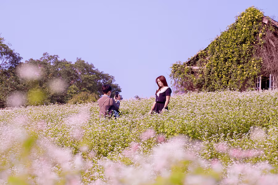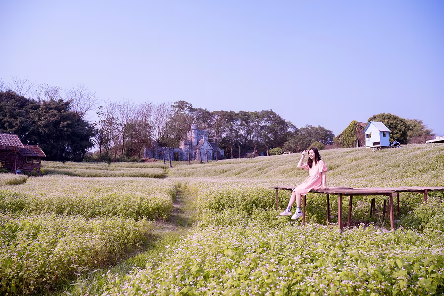ANTD.VN - Cánh đồng hoa tam giác mạch rộng hơn 1 hecta (10.000 m2) tại Thảo nguyên hoa (Long Biên, Hà Nội), thu hút được đông đảo du khách tới tham quan trong những ngày qua. Được trồng trên một triền đồi cùng cách bài trí xen lẫn đá xám, nhà gỗ nên quang cảnh khá giống với Cao nguyên đá Đồng Văn (Hà Giang).